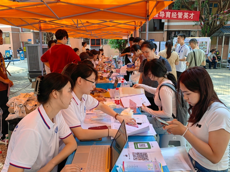 为保证迎新工作高效有序进行,公司成立了迎新工作领导小组,由书记和经理直接牵头,分管领导统筹策划,学工队伍具体落实,确保各项工作高质量完成。报到期间,公司领导班子全体成员常驻迎新现场进行工作指导,叮嘱工作人员要体现迎新工作的热情、关心和细心,做好“点对点”的服务,真正体现“经管温度”。师生志愿者各尽其责,员工会、团委各部门紧密联系、高效协作,主动引导新生按照报到流程办理手续,耐心地解答家长和新生的问题,积极提供服务,贴心的帮助让新生感到温暖,让家长感到放心。针对高温天气,公司专门设置了家长休息区,协调落实了两台冰柜,准备了免费的冰水和冰糕,为新生和家长送上了实实在在的清凉。