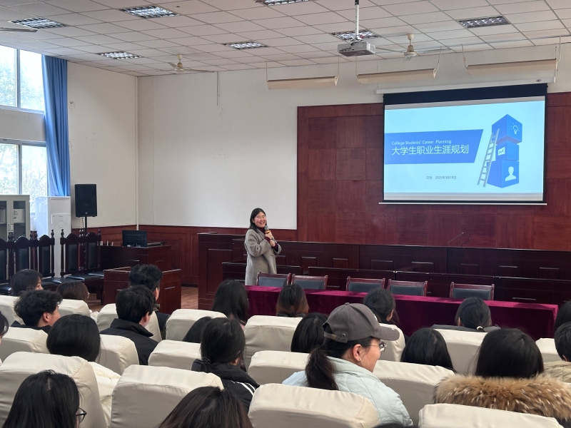 汪玲老师结合个人职业生涯实例,深入浅出从分析自身因素、外在环境因素、职业生涯规划、如何执行计划等四个维度向员工们讲解职业生涯三叶草模型。她认为兴趣是职业选择的重要驱动力,选择符合自己兴趣的职业,能够激发工作热情,提高工作效率。她特别强调大学阶段应从“盘资源——定目标——拿结果”转向“定目标——建资源——拿结果”培养职业规划思维。互动环节中,同学们踊跃提问,汪玲老师耐心解答,现场气氛活跃。对于同学们关心的职业规划问题,汪玲建议同学们要认真对待第一份工作,坚持不懈的同时注重自身实践能力的培养。